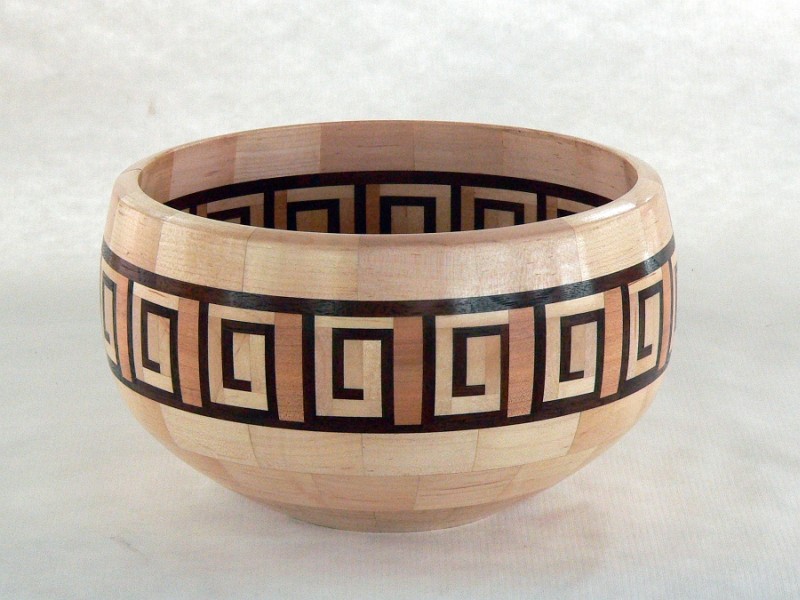 Maple with walnut Greek key feature ring